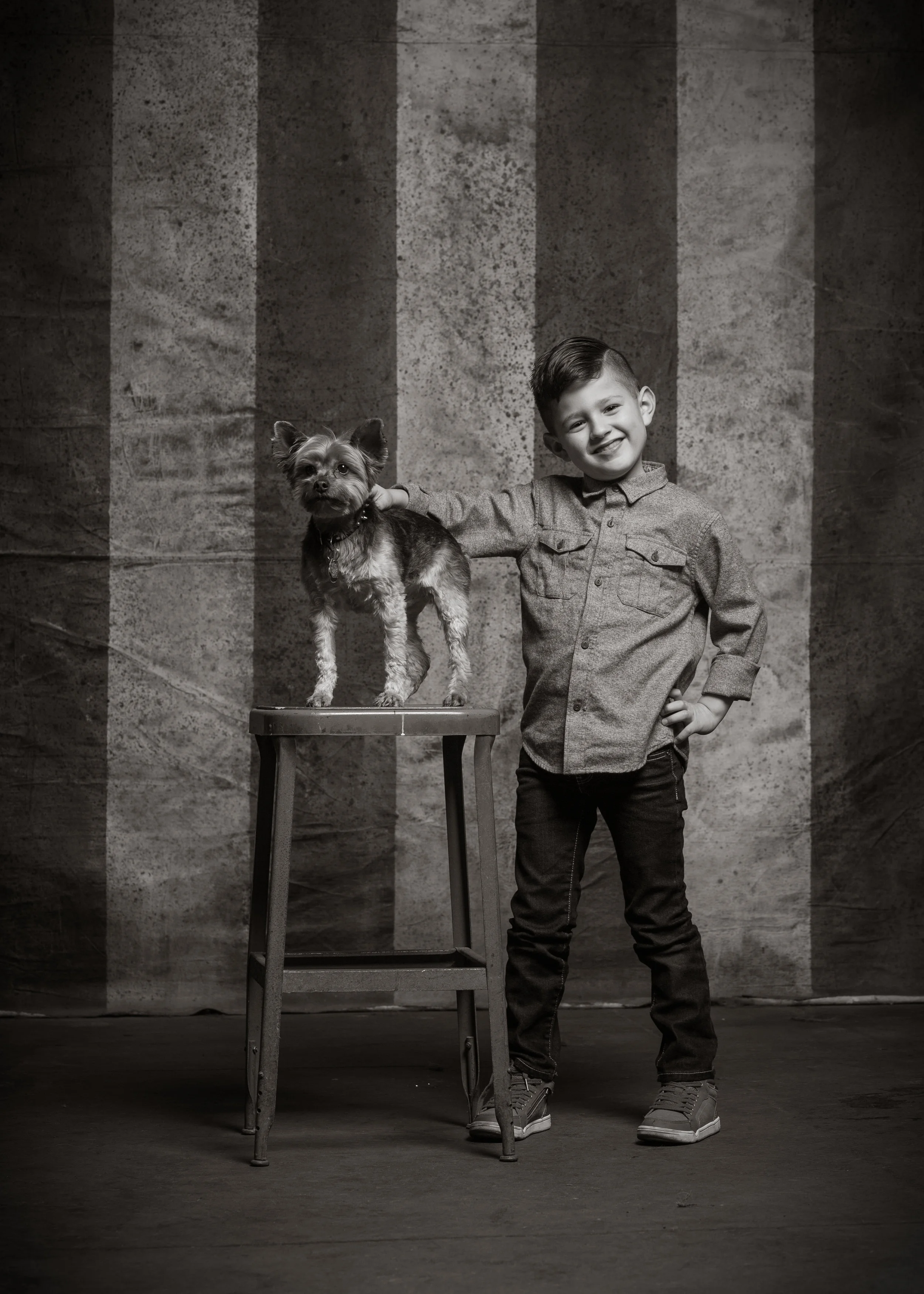 I wanted to keep Santi looking fun and funky - just like his personality. So I gave him texture through his shirt, slid a pair of skinny jeans on him with a cute pair of grey high top boots by Stride rite (I think I got at Nordstrom). What I didn't know was we would end up with color pictures & the textured red shirt would pull everything together perfectly...an unexpected surprise!
